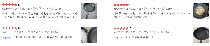 그래서 이번엔 인덕션 대응, 열전도 우수, 코팅 탈락 적음 이 세 가지를 기준으로 골랐고,
