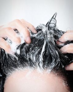1. 먼저 머리를 충분히 적신 후 샴푸를 숱이 적은 부분에 직접 짜서 도포합니다.