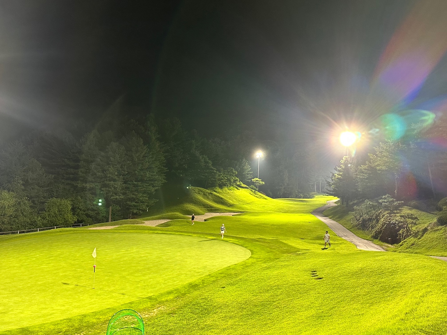 관리 잘 되어있는 페어웨이 잔디 위에서 시원한 밤공기를 마시며 즐기는 골프를 쳤습니다