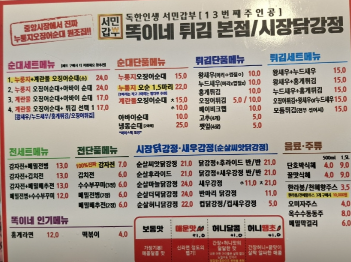 가장 인기 있는 메뉴는 단연 누룽지 오징어순대입니다.