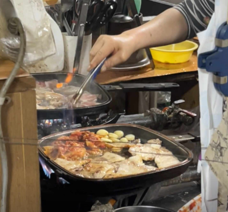 한쪽 주방에서 지글지글 익어가는 삼겹살, 큼지막하게 썰어 내주는 두부김치, 푸짐하게 담아내는 계란말이. 그 외에도 골뱅이무침, 철판만두, 짜파구리 등 이름만 들어도 술 한 잔이 당기는 메뉴들이 준비되어 있습니다. 가격은 대부분 1만 원을 넘지 않아 부담 없이 이것저것 시켜볼 수 있죠.
