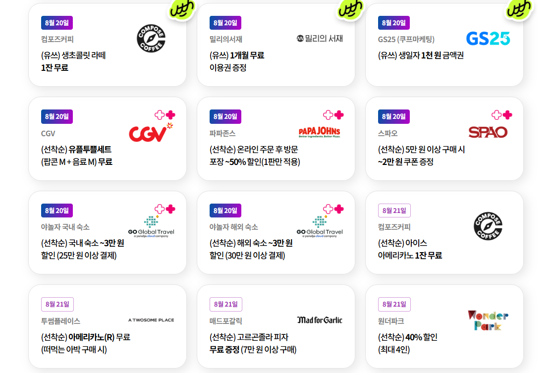 투썸플레이스, GS25, CGV, 다이소, 야놀자 등 일상에서 자주 쓰는 브랜드가 가득합니다.