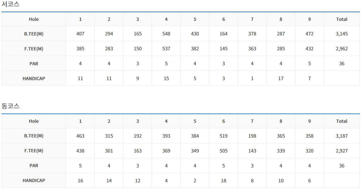 이번 라운딩은 서코스 → 동코스 순서로 진행했습니다.
