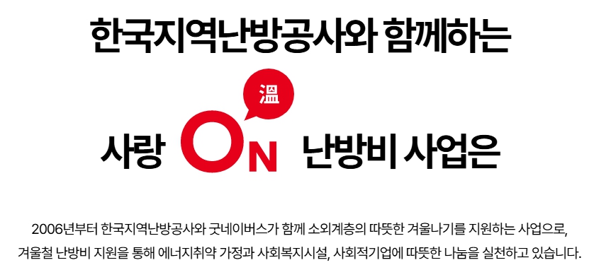 사랑온 난방비 지원사업은 겨울철 난방비 부담을 줄이기 위한 사회공헌 프로그램입니다.