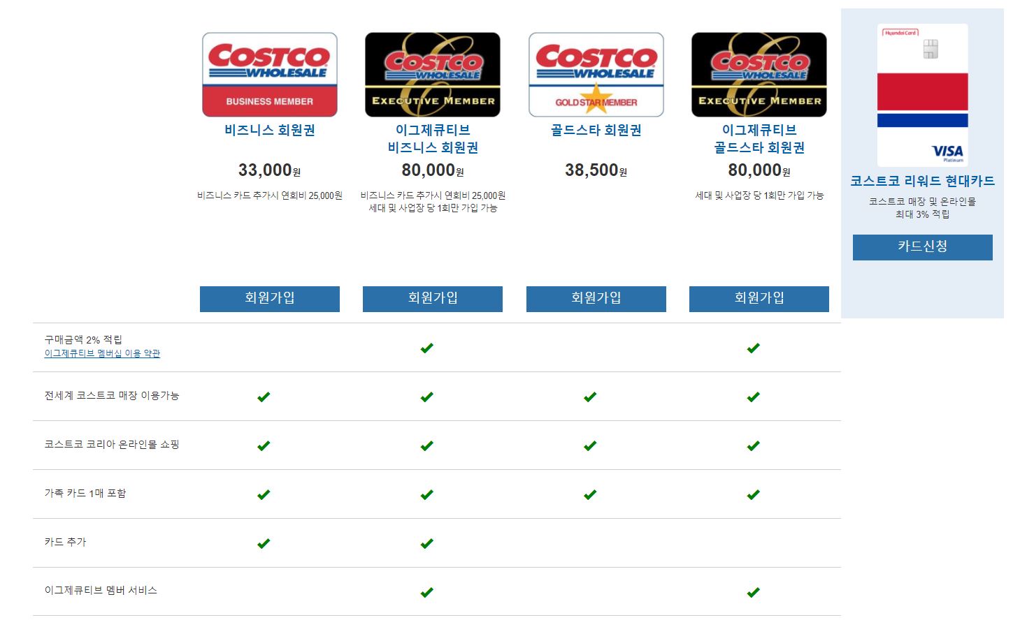코스트코 연회비 및 가입비 안내