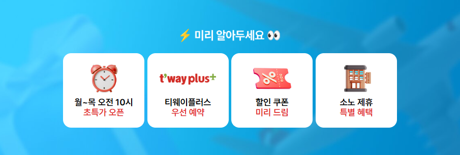📌 8월 11일 오전에는 티웨이 홈페이지나 앱에 미리 접속해서 준비하세요!