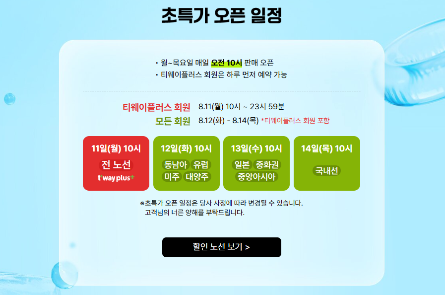 📌 8월 11일 오전에는 티웨이 홈페이지나 앱에 미리 접속해서 준비하세요!